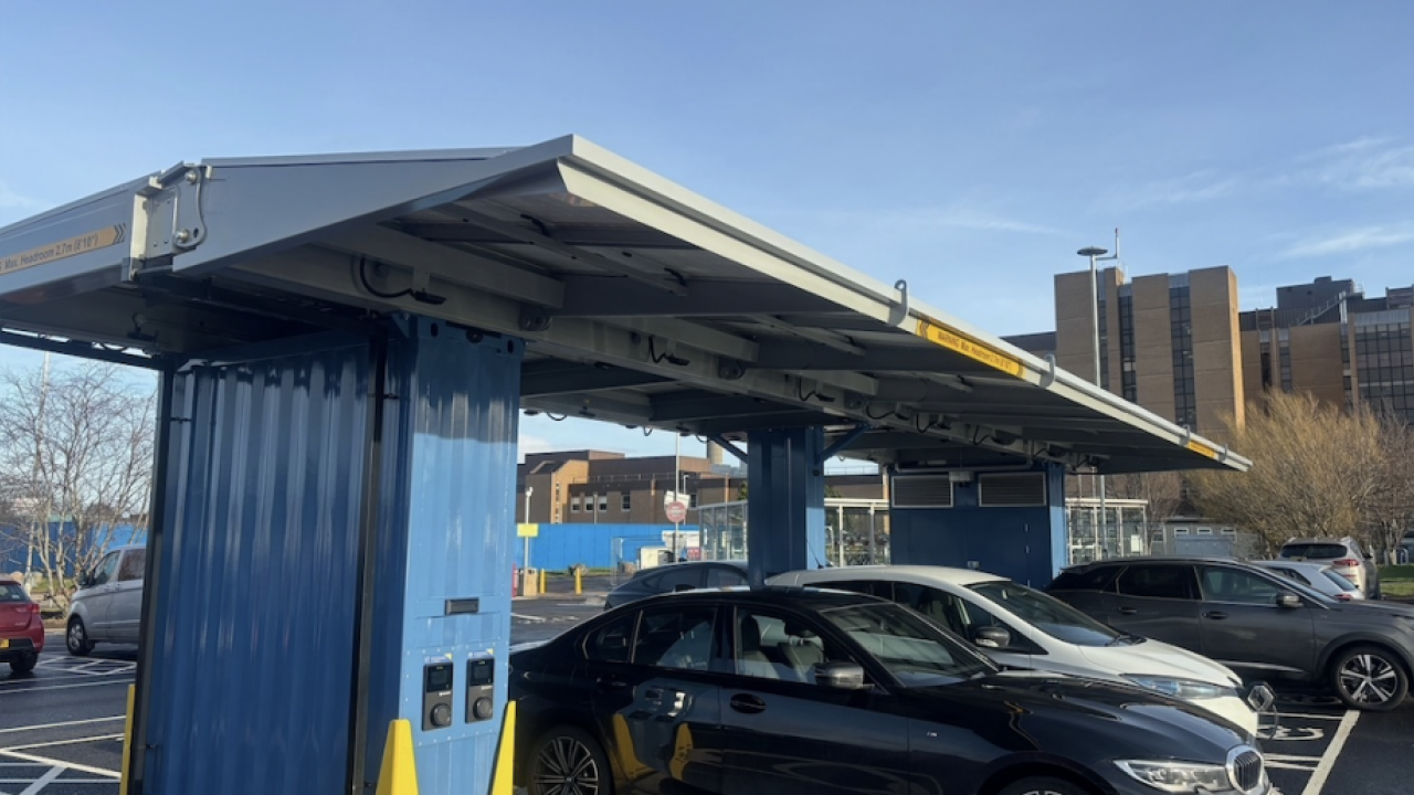 A pop-up solar car park and electric vehicle (EV) charging hub has been installed hub at Raigmore Hospital in Inverness, Scotland.