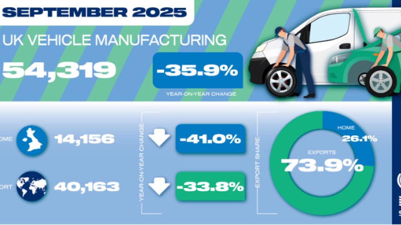 Commercial vehicle production, meanwhile, declined for the sixth month in a row, by -77.9% to 3,229 units, driven by the consolidation of operations by a leading manufacturer. Combined car and van production, therefore, was down by -35.9% in September to 54,319 units.