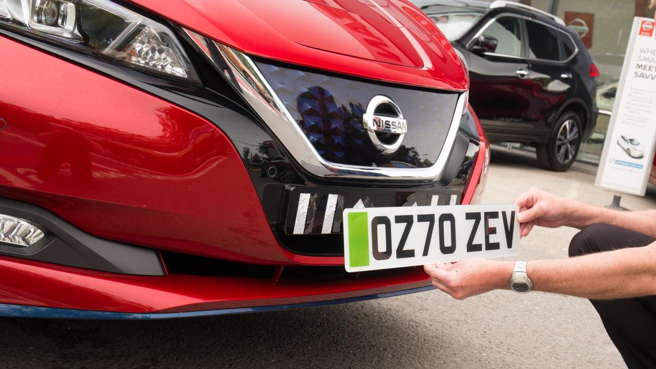 As 70-plate models are introduced at Nissan dealers, trial green numberplates have been fitted to show electric vehicle customers how they could look when they hit the road later this year.