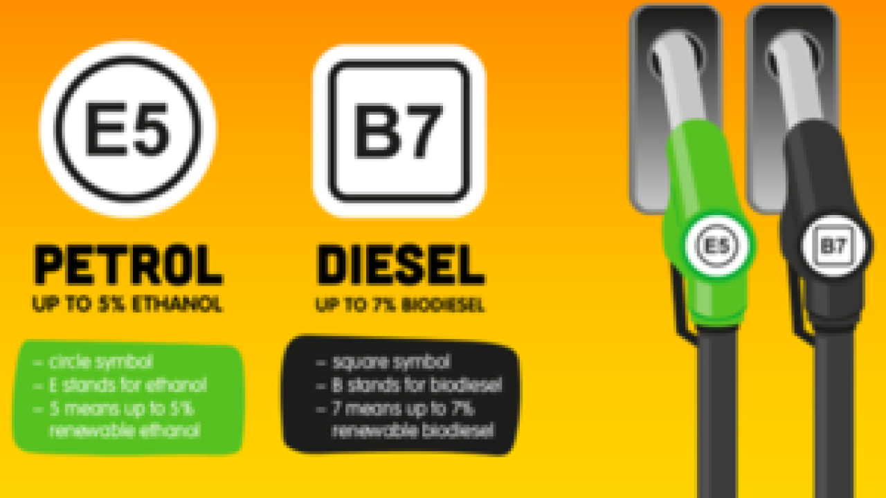 Petrol, which contains up to 5% renewable ethanol, will be labelled ‘E5’, while diesel, which contains up to 7% biodiesel, will be labelled as ‘B7’.