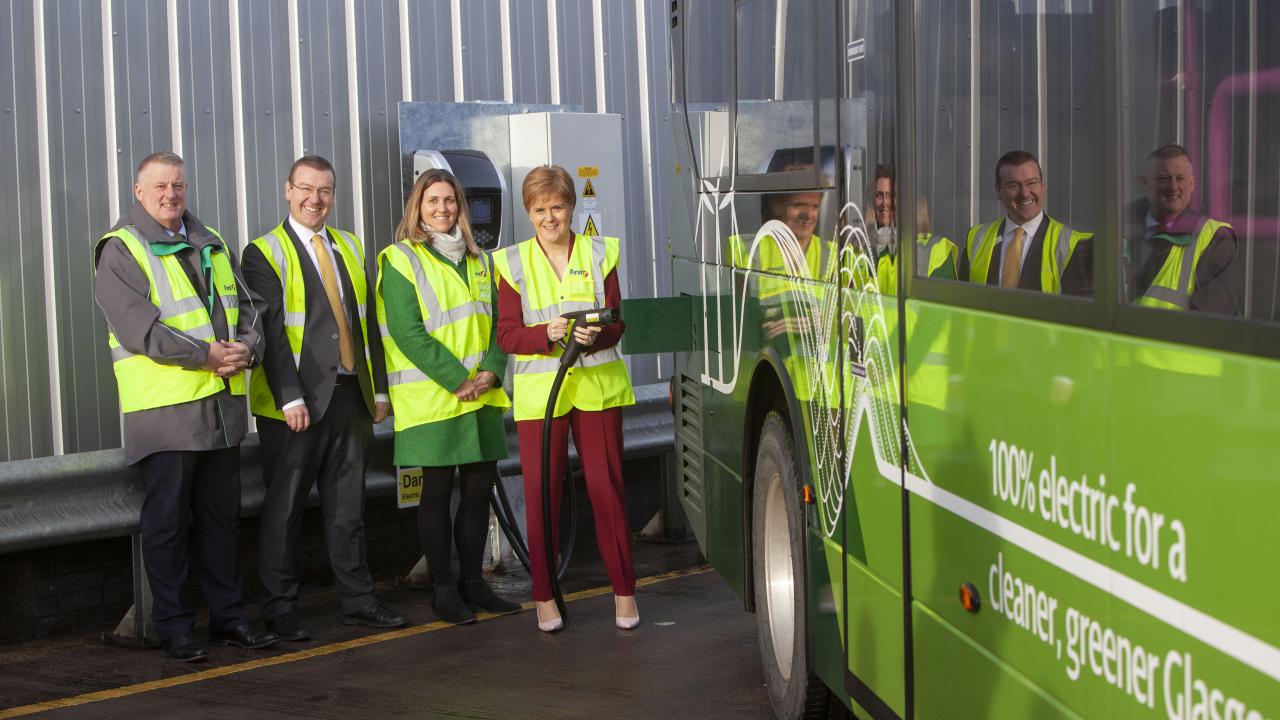 First Minister, Nicola Sturgeon MSP, attended First Glasgow’s Caledonia Depot to plug the new electric buses in for their first charge and is delighted with the new addition to the city’s bus fleet.