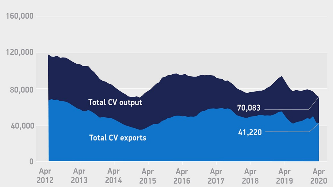 Only a handful of commercial vehicles left factory gates to complete existing orders, all destined for the UK market, with zero exports in the month.
